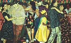 Como Eckhout completei a série dos retratos grandes com um quadro de dança, um forró do jeito que a gente faz em casa no mês de junho, retratando a tribo de casa, cunhados, afilhados, compadres, agregados e amigos.